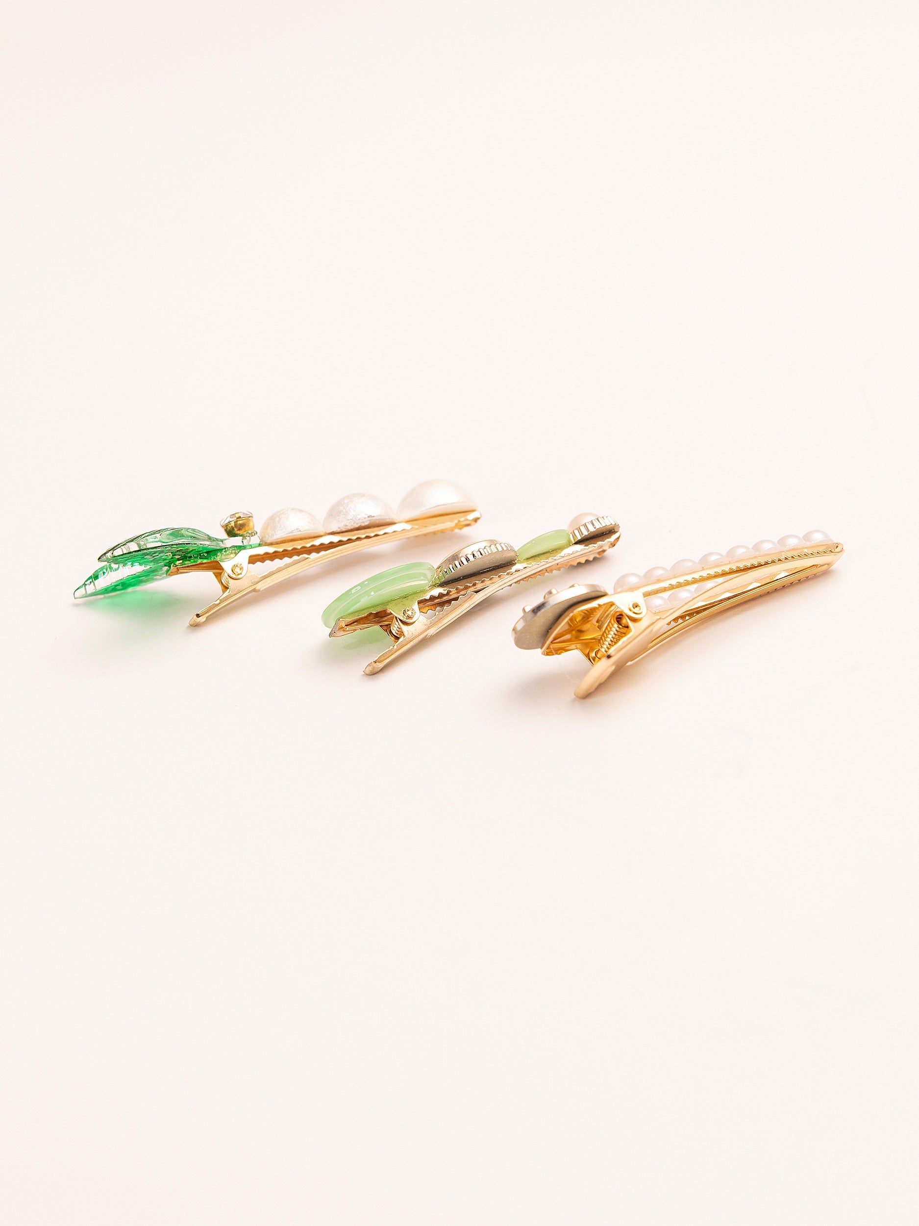 - Single snap clip with blend of glittering and cloudy texture embellishment