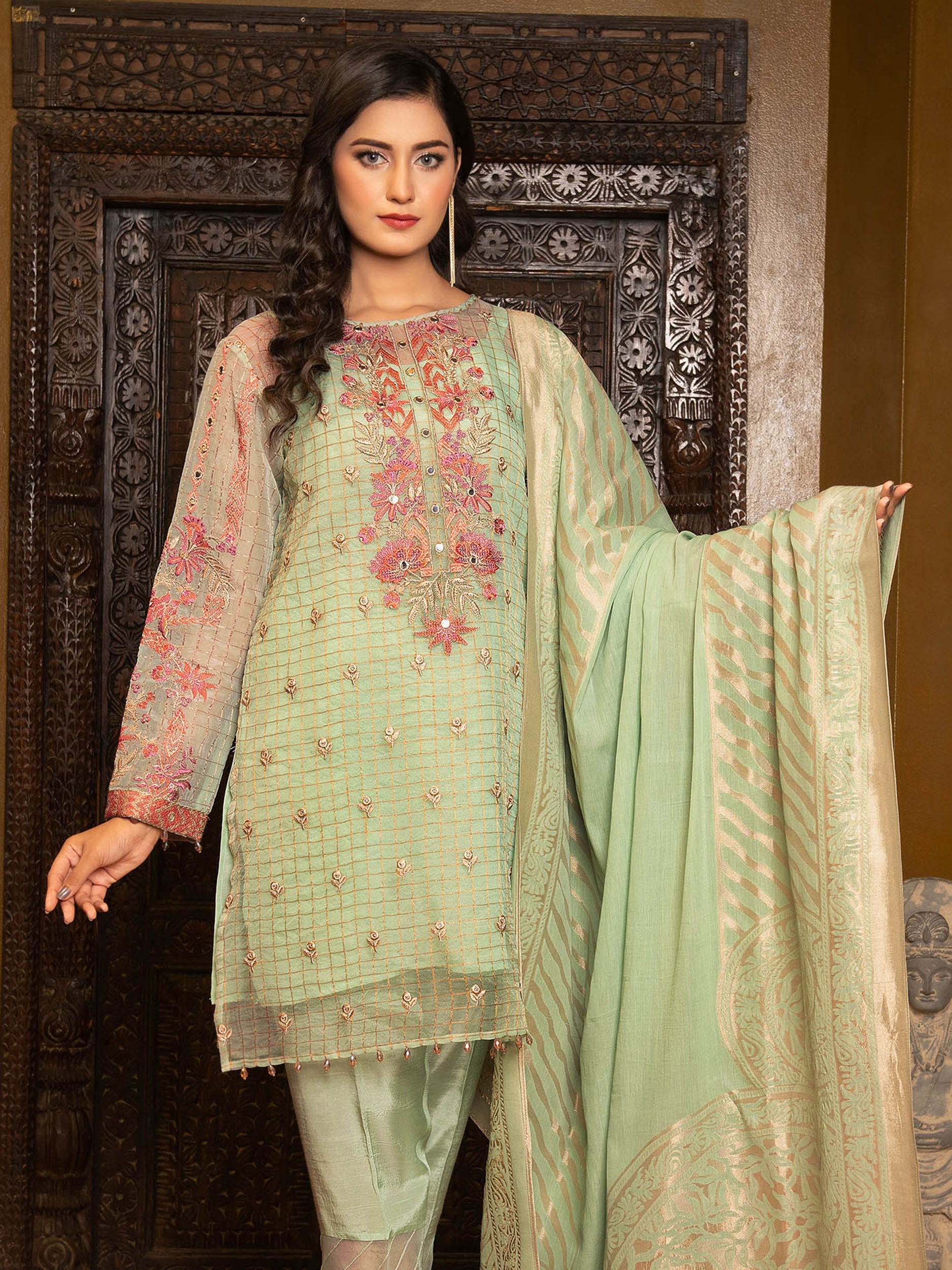 - 2 Piece Embroidered Organza Suit (Shirt+Dupatta)
