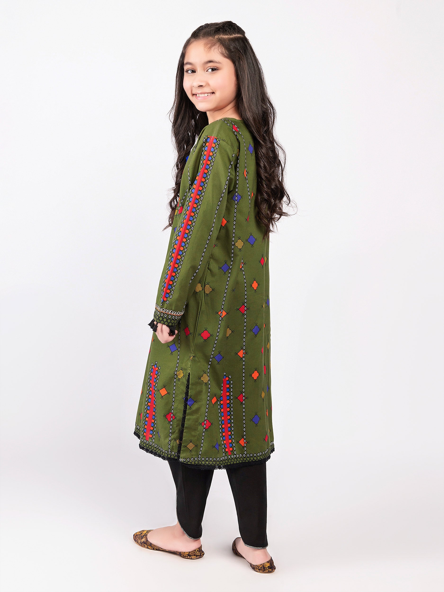 - Embroidery and sequin work on the neckline, placket and cuffs