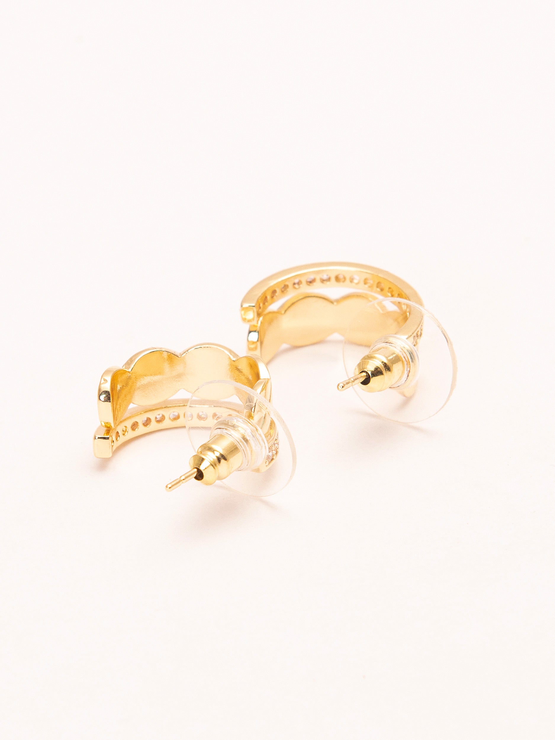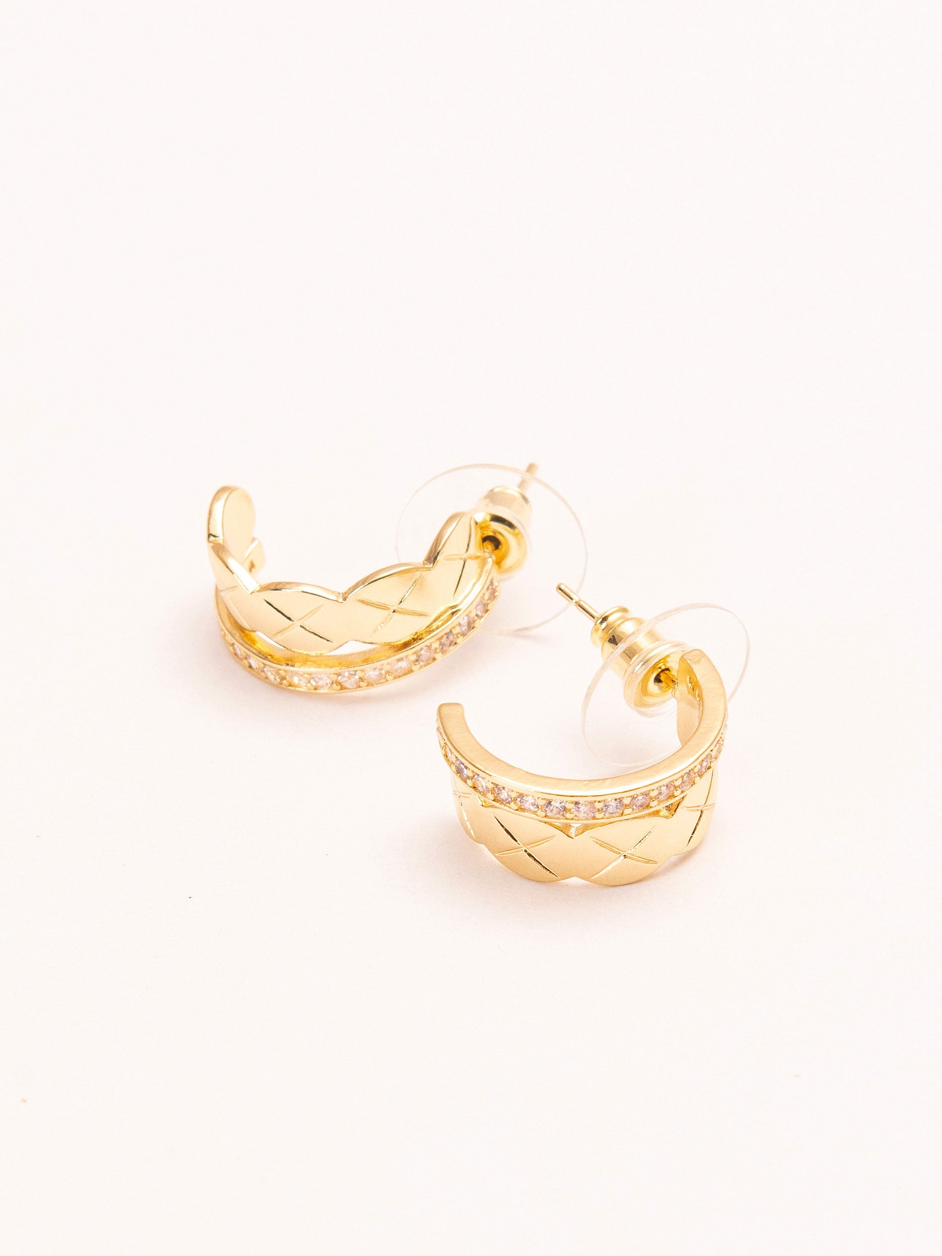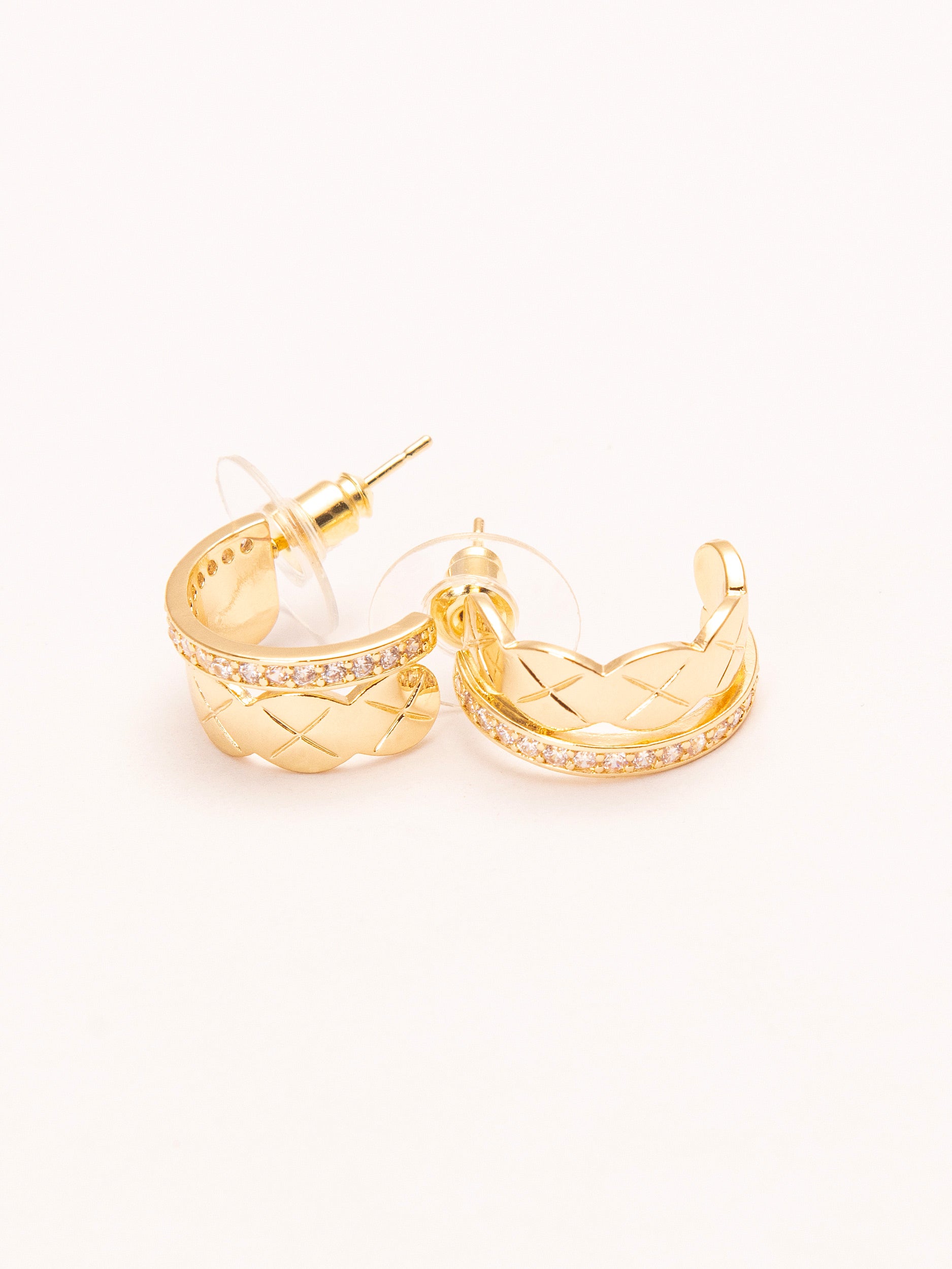 - Criss-cross pattern and rhinestone embellishment on the earrings
