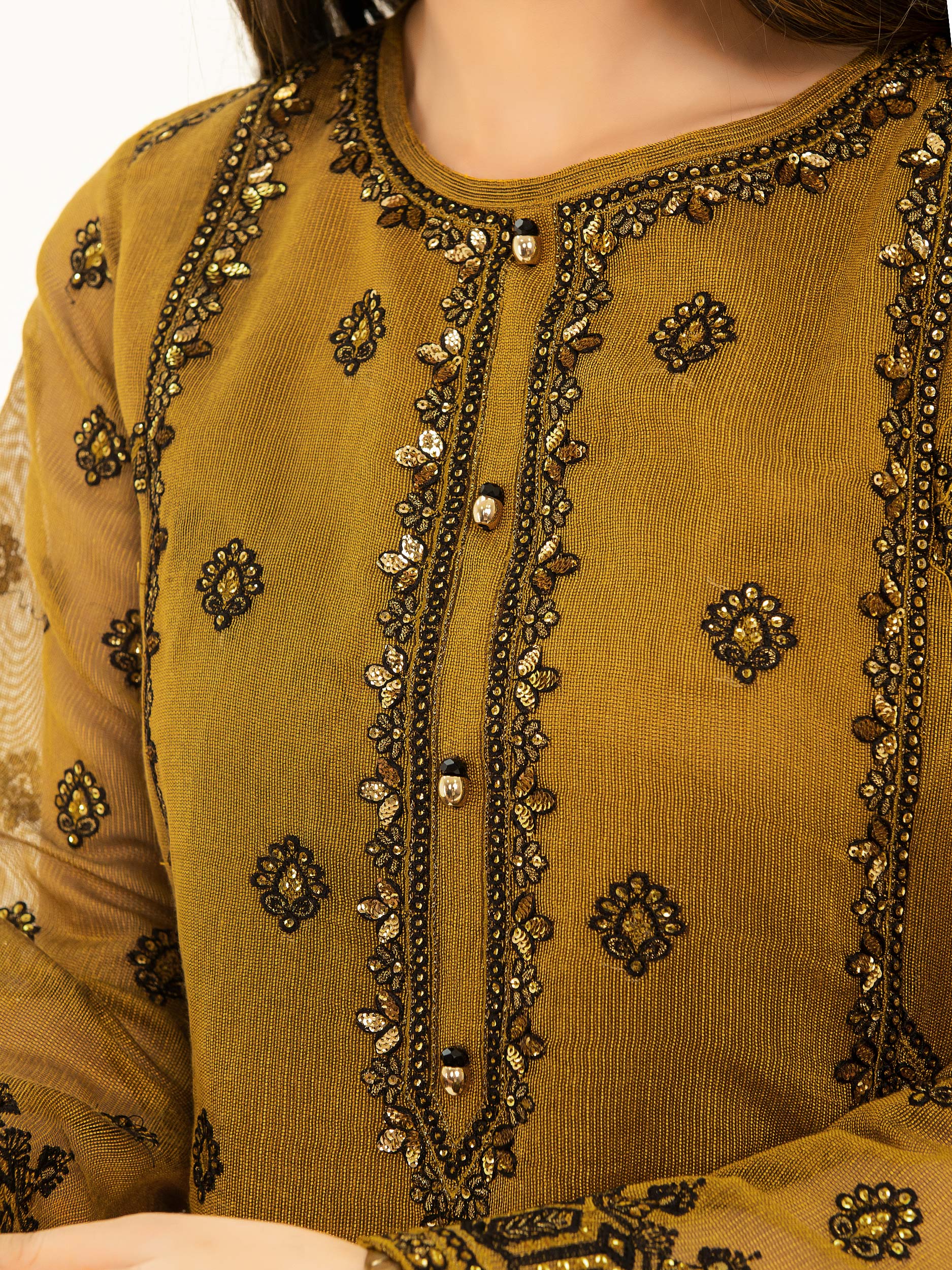 - Black tone embroidery with tilla and sequin detailing all over the shirt