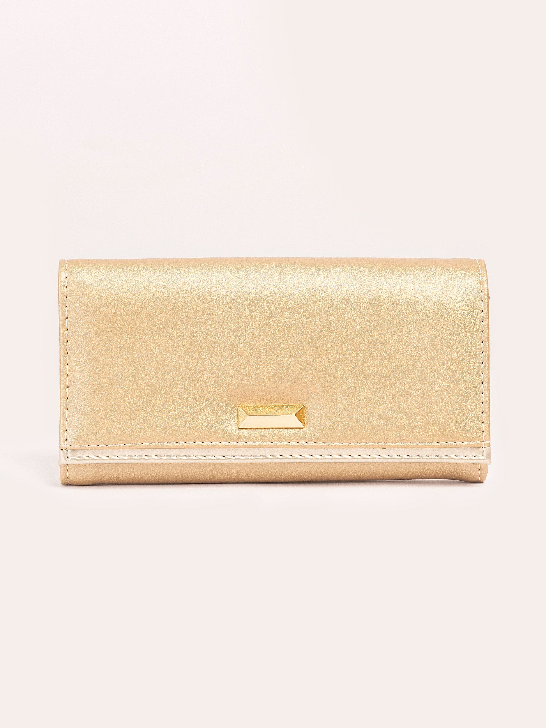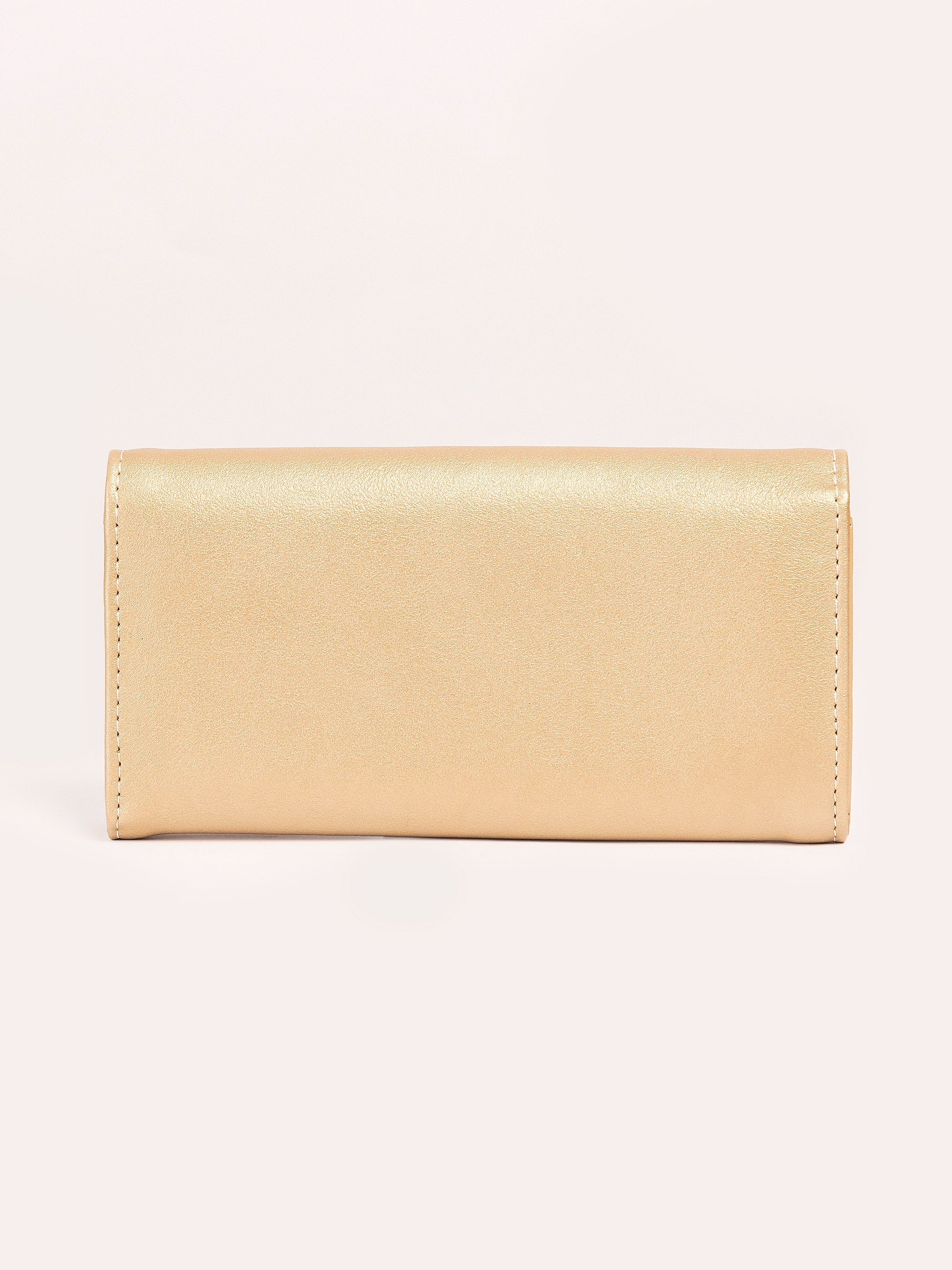 - Prismatic metallic embellishment on the flap