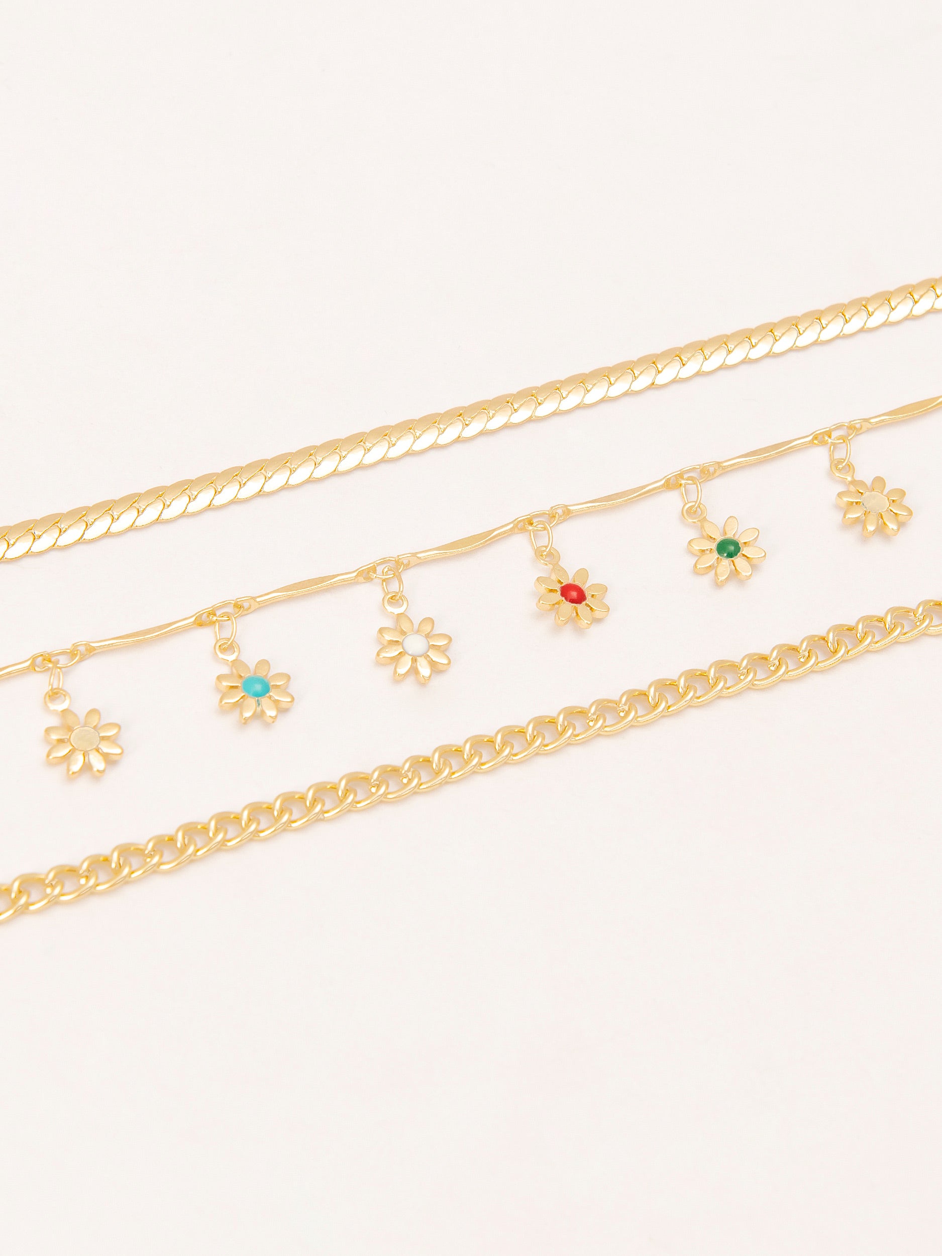 - Floral charms on one anklet