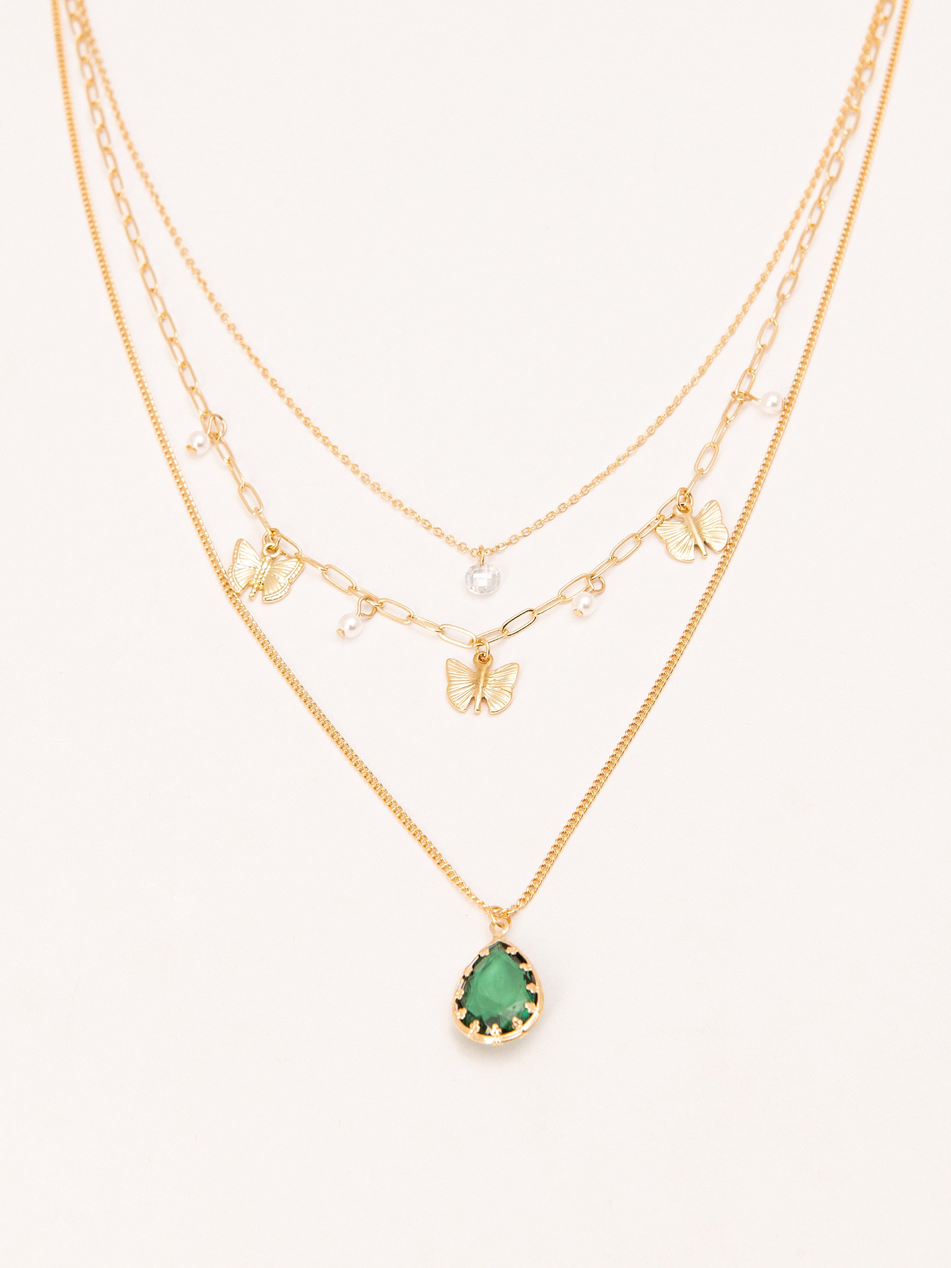 - Link chain with pearl beads and butterflies charm