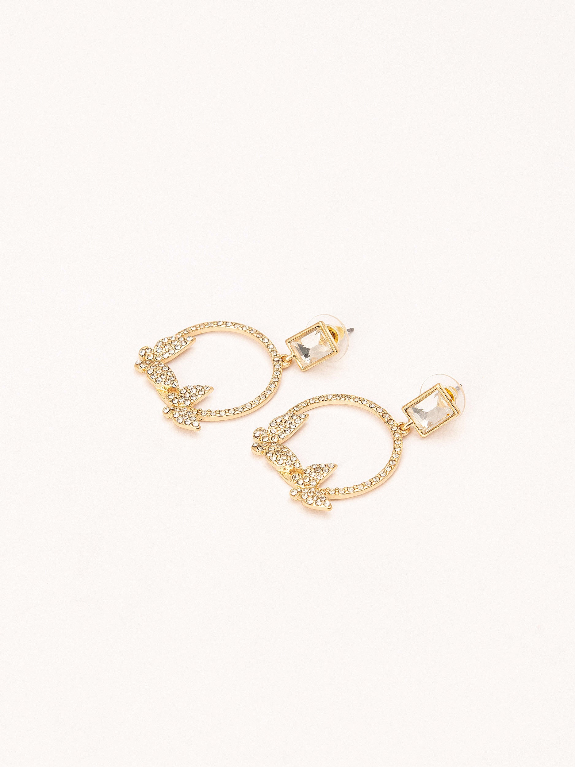 - Dropped hoop with butterfly imagery